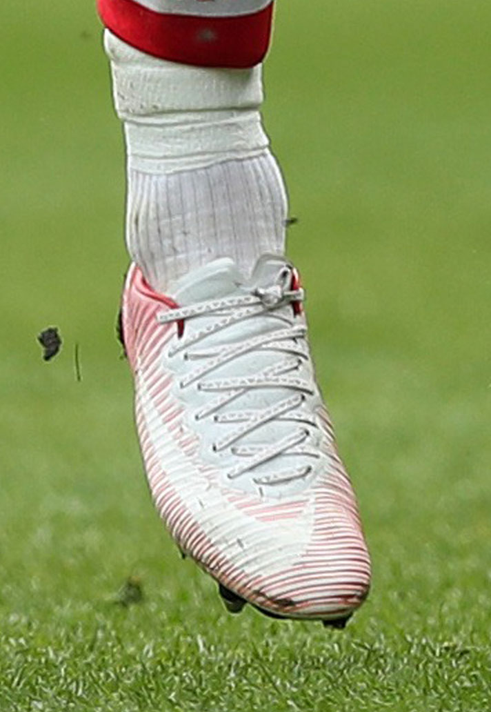 One of the smartest custom creations of the weekend came via the feet of Doncaster Rovers' Tommy Rowe who has whipped up a white and red edition of the Mercurial Vapor XI on NikeiD. A subtle pinstripe design blends nicely into the home kit of Rowe's Rovers, whose chances of winning League Two slipped on Saturday after a 3-1 defeat at home to Exeter City.