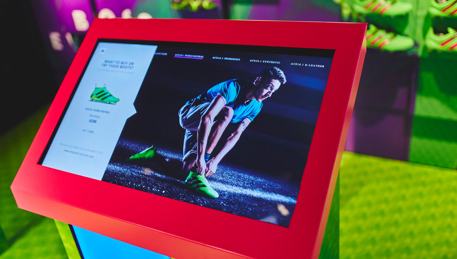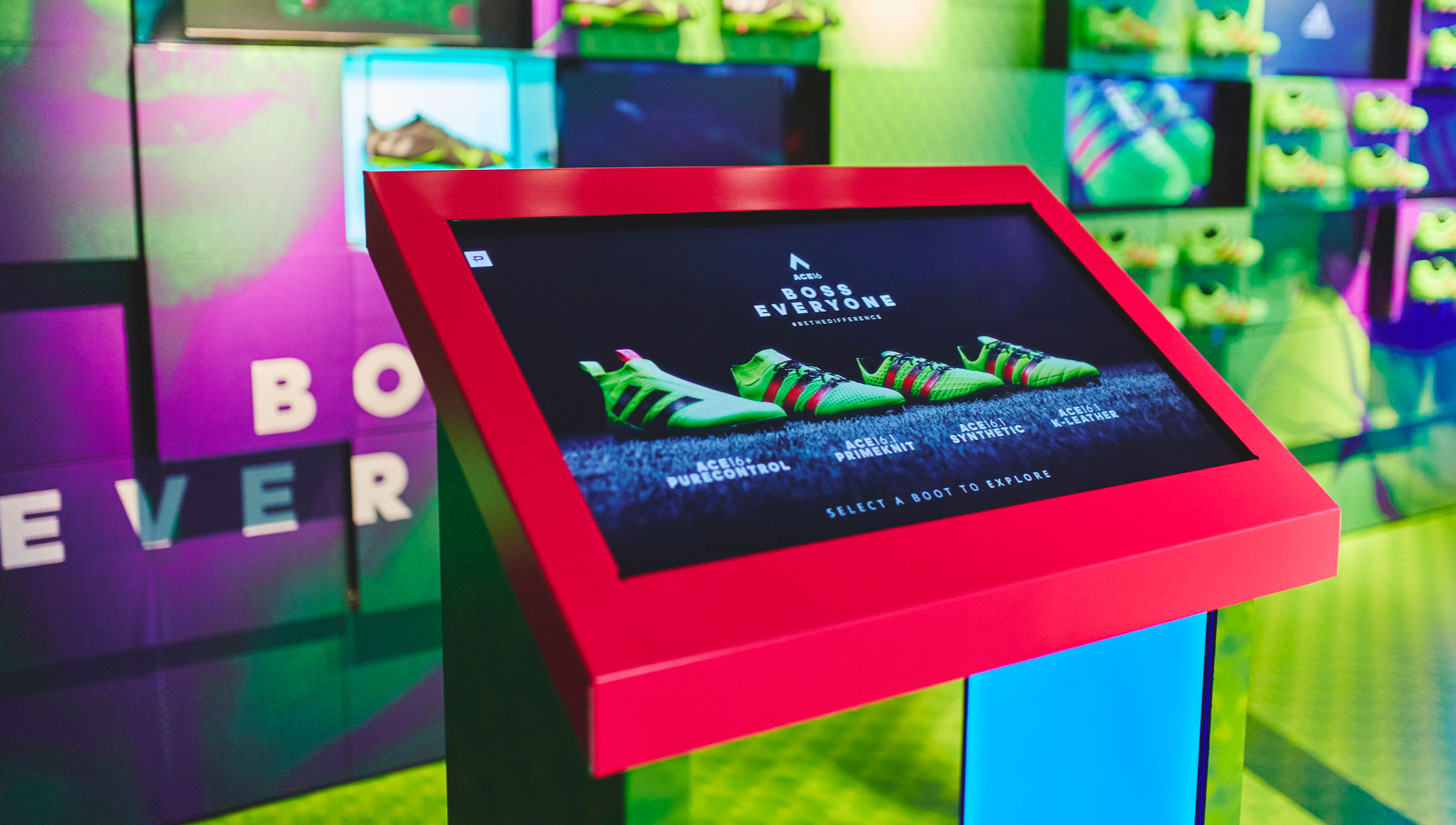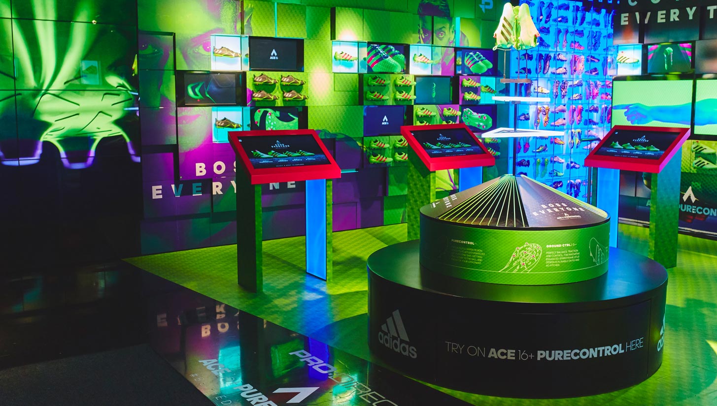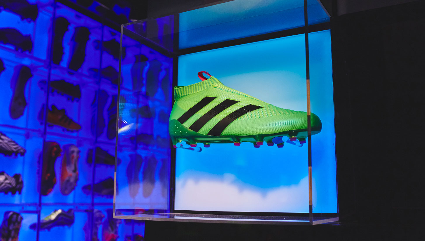 Wall to wall with the new adidas ACE16 collection, it's a glowing celebration of the latest innovation from the labs championed by three stripes. A collaboration between Pro:Direct and adidas that has been installed and designed by Intermarketing Agency, it entwines the stripes onto a shop floor like no other.