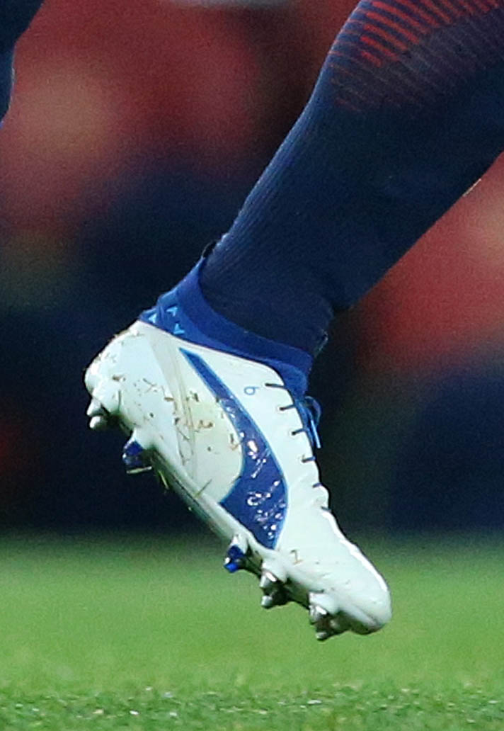 Marco Verratti marked his first game in the new "white/blue" PUMA evoTOUCH with a Champions League own goal but a place in the knockout stages as PSG drew 2-2 with Arsenal at the Emirates. In what is only the second official on-pitch colourway that PUMA have laced up their key evoTOUCH players in, it's a clean update that complements the PSG home strip nicely.