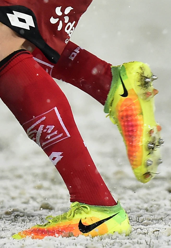 The new Hypervenom 3 may have been released in a lo-cut Flyknit design, but Dijon's Vincent Rufli will have a to remain patient to see if Nike aim to apply the technology to the Magista silo. Rufli has cut the Dynamic Fit Collar off the Magista Obra II to create a lo-cut silhouette that still retains the Flyknit feel – a method we've seen from numerous players. You can bet Nike are cooking up a solution somewhere behind closed doors.