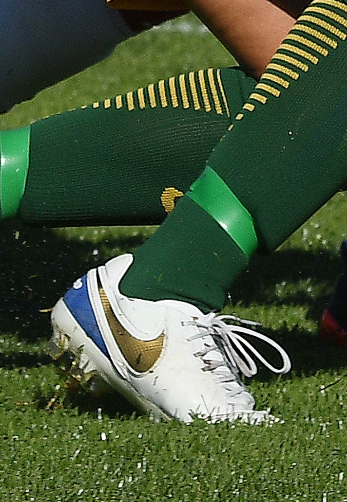 Gema Simon created her own NikeiD Tiempo Legend 6 colourway to wear in the Women's Algarve Cup. The Australian international was in action against Denmark sporting her beautifully executed "White/Gold/Blue" design – a smart custom creation from the Aussie.