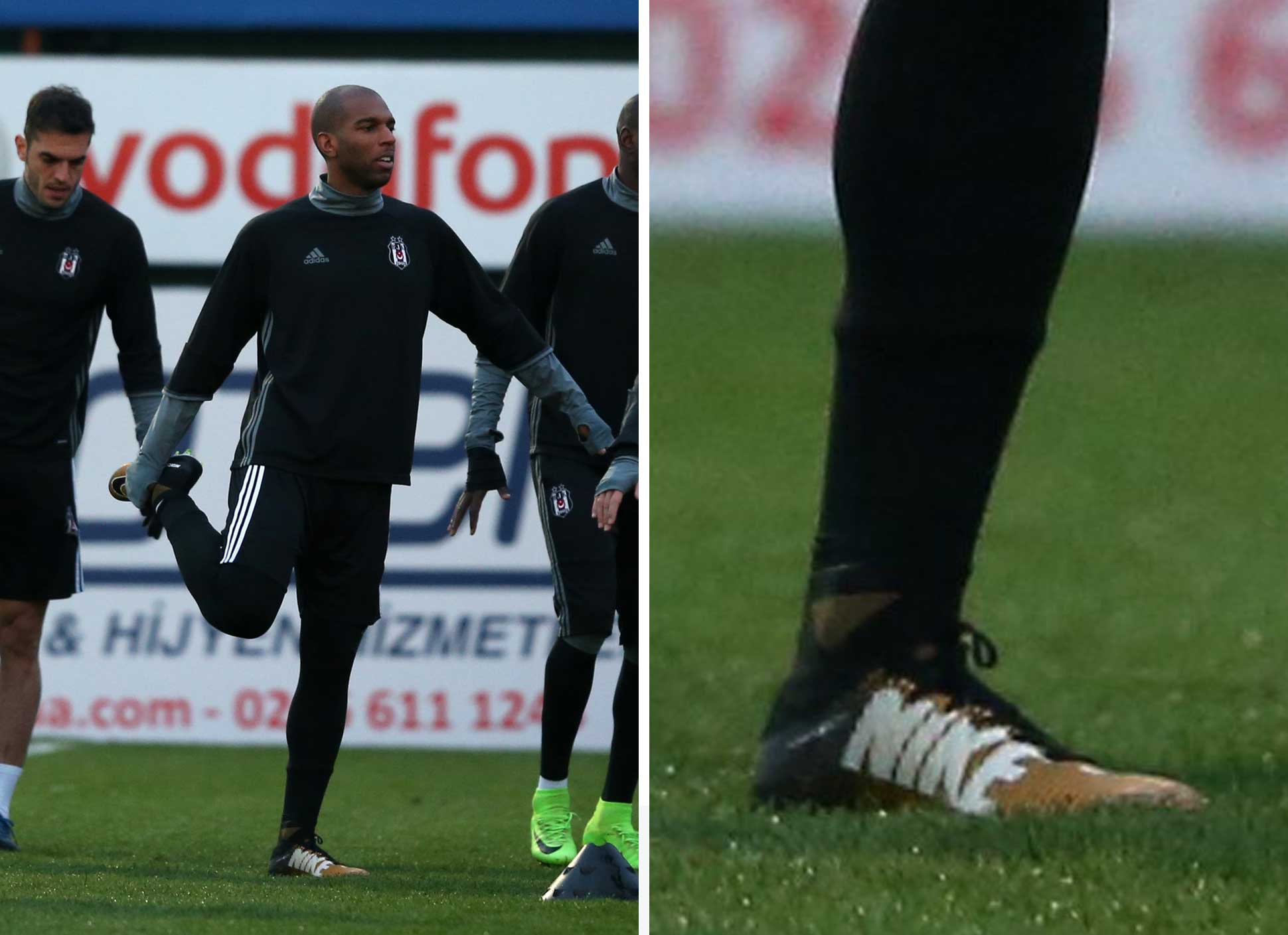 The former Liverpool forward is never far from a new Mercurial release. Ahead of the Europa League tie between Besiktas and Olympiacos, Babel used his side's training session to show off the latest additions to his collection. It's the first we've seen of this new Mercurial design, which boasts a heavy helping of Nike branding on the instep.