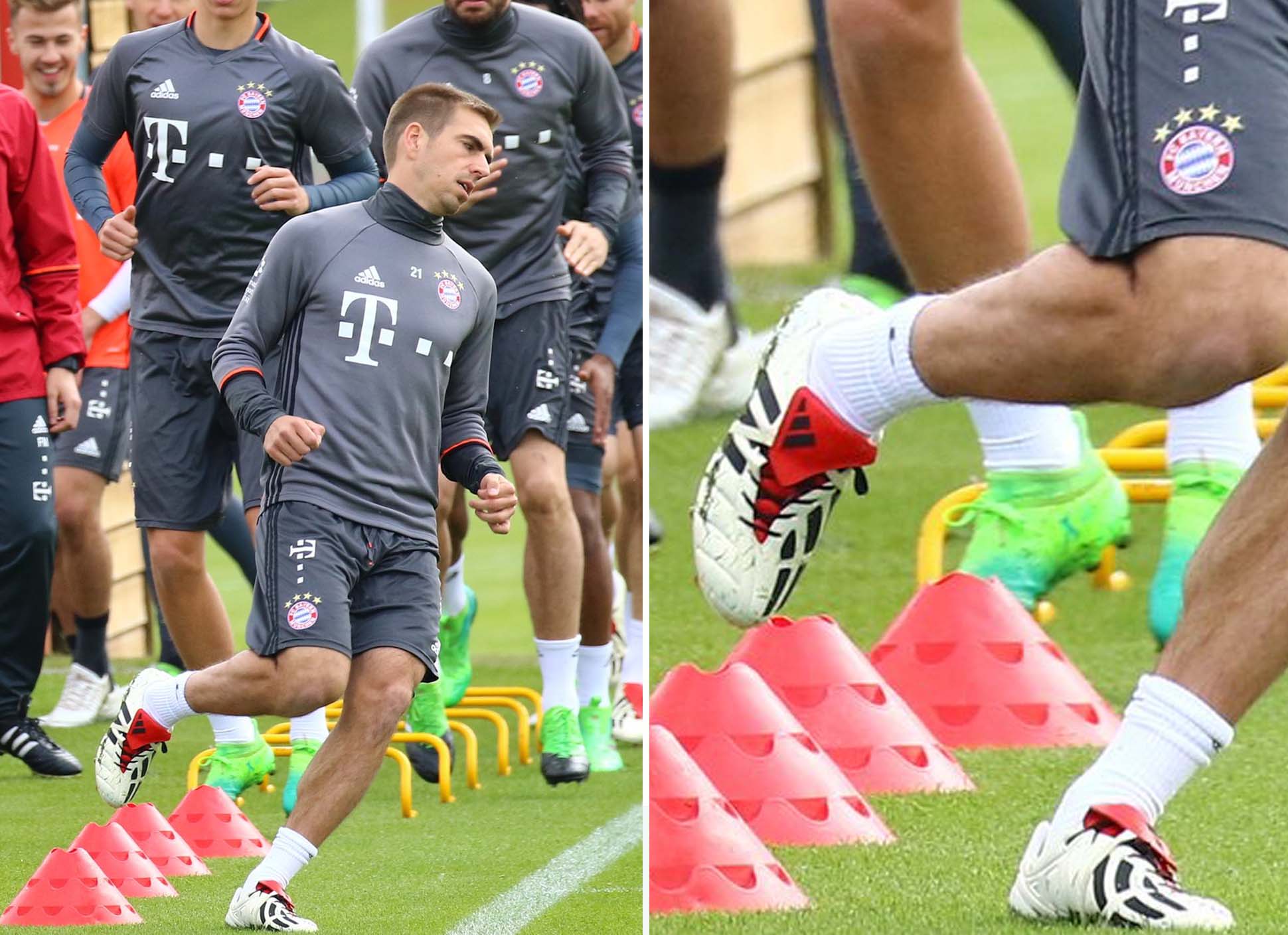 Joined by Xabi Alonso (that's him in the background...) as Bayern Munich trained ahead of their Bundesliga match against Darmstadt at the weekend, Lahm slipped into the nostalgic colourway complete with fold-over elasticated leather tongue and rubber padded shooting technology. It remains to be seen whether the Bayern duo stay in them for the game but whatever happens its a touch of throwback magic to see two legendary players reunited with a silo of such magnitude. It’s also refreshing to see a limited edition doing what it was built to do, play football.