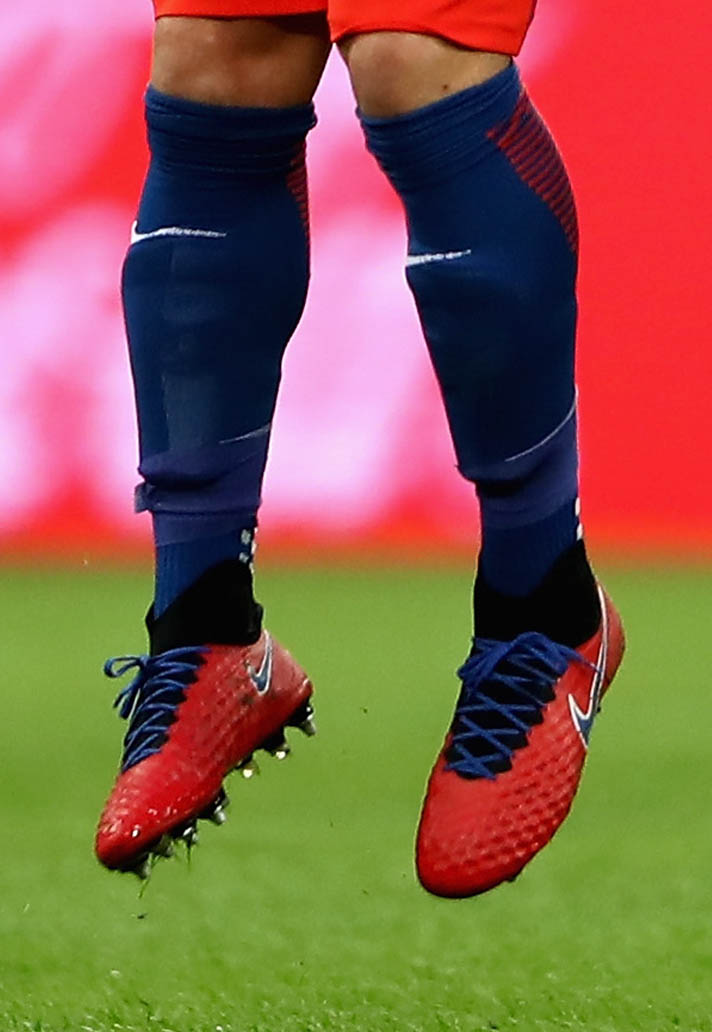 Chile hardman Gary Medel joined in on the Chile NikeiD takeover for the 2017 Confederations Cup by lacing up a red and blue edition of the Magista Obra II to complement his nation's home kit. Medel wasn't alone in wearing custom colourways for the Final defeat to Germany; Arsenal's Alexis Sanchez and Bayern Munich's Arturo Vidal also slipped into similar designs.