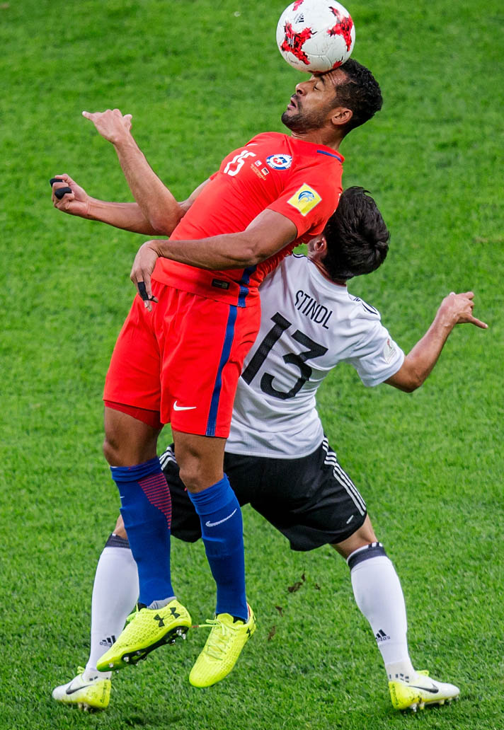 Another Chilean wearing new boots in the 1-0 final defeat to Germany on Sunday was Jean Beausejour. The former Wigan and Birmingham City wideman was laced up in the latest hi-vis Under Armour Clutchfit boot as his side ultimately had missed chances to blame for falling at the final hurdle of the Confederations Cup in Russia.