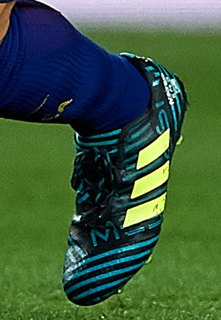 Leo Messi was on the scoresheet but Barcelona lost the first leg of the Super Cup 3-1 to Real Madrid. For Messi, the game provided a chance to switch into the latest "Ocean Storm" Nemeziz 17.1 colourway. Despite looking like the standard Nemeziz, Messi's boots are slightly different as the 'Nemeziz' branding on the upper is replaced by his name. That, and the collar is modified too. Big time.
