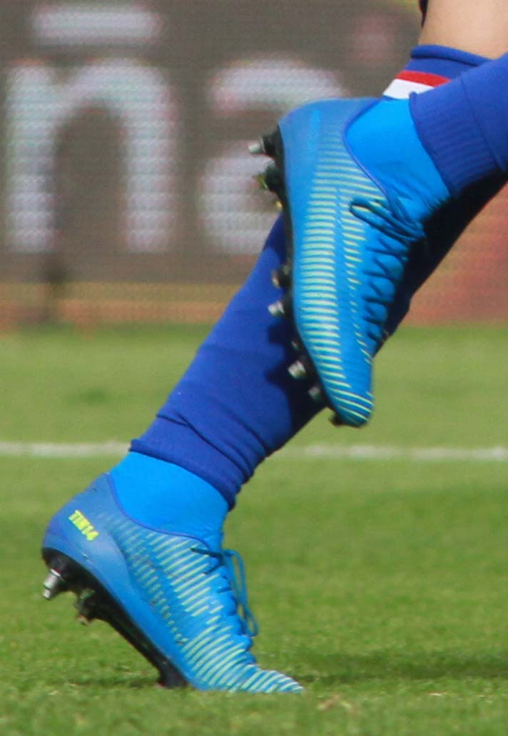 There was custom creativity on show in the Mexican league this week as Martin Rodriguez was wearing his bespoke Nike Mercurial Vapor XI design. Wrapped in tones of blue to match up with his Cruz Azul kit. Smart.