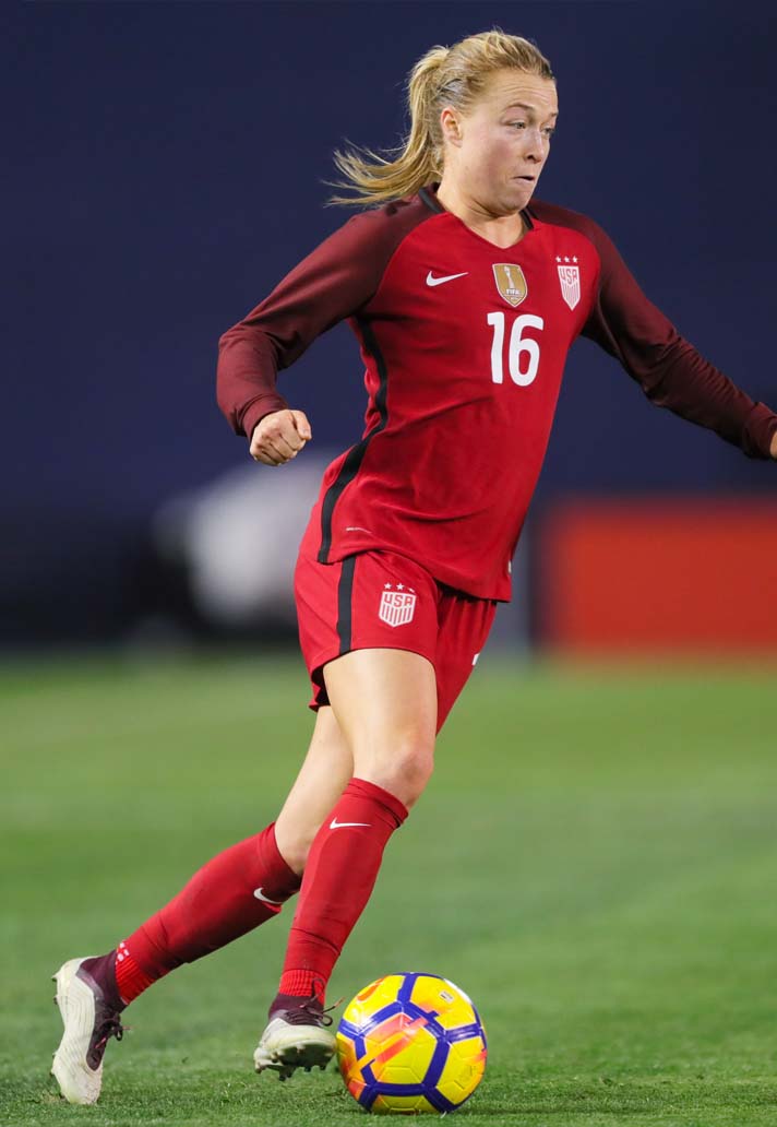 Emily Sonnett used the USA's fixture with Denmark to sport the first women's exclusive design of the adidas Predator 18. The "Vapour Grey/Maroon" colourway dropped with a slightly narrower fit and a smaller size run.