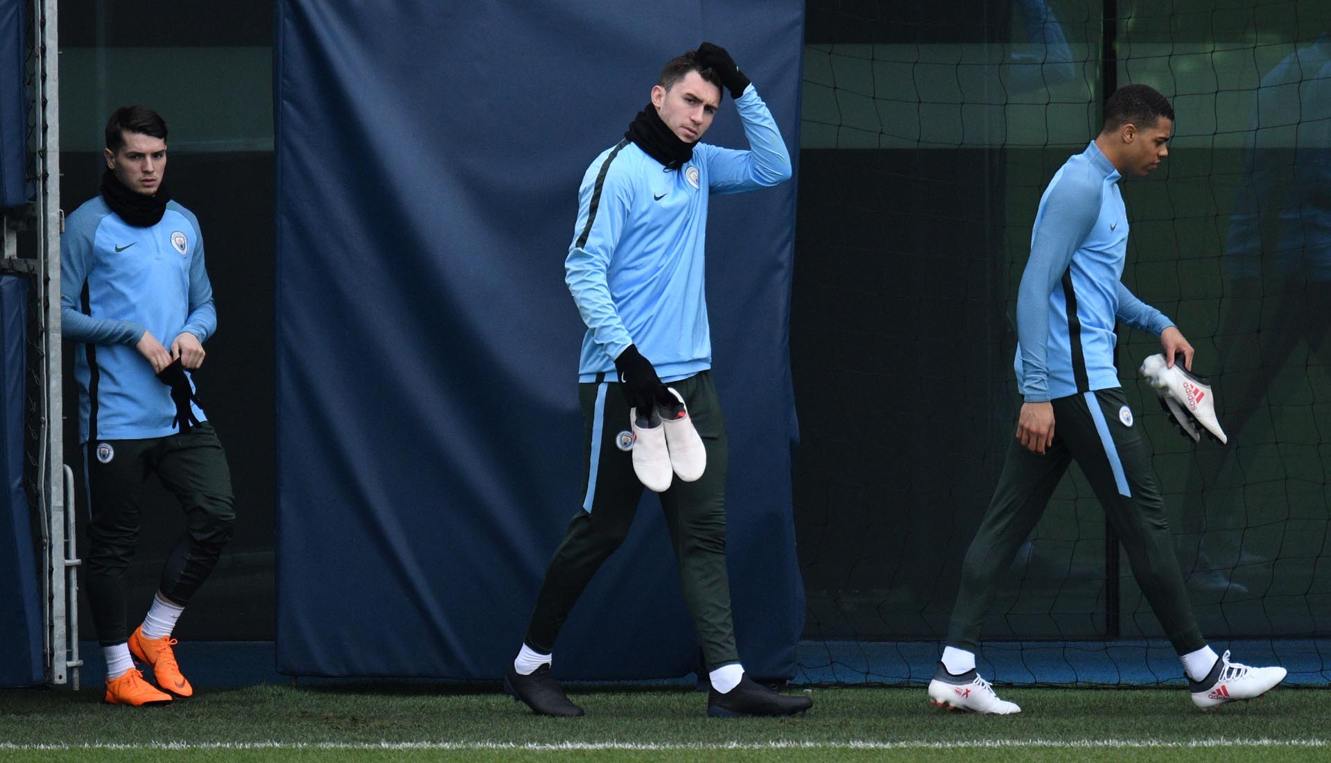 Manchester City defender Aymeric Laporte switched into a blackout edition of a next-generation adidas football boot on Tuesday as his side trained ahead of their Champions League Last 16 Second Leg against Basel on Wednesday night.