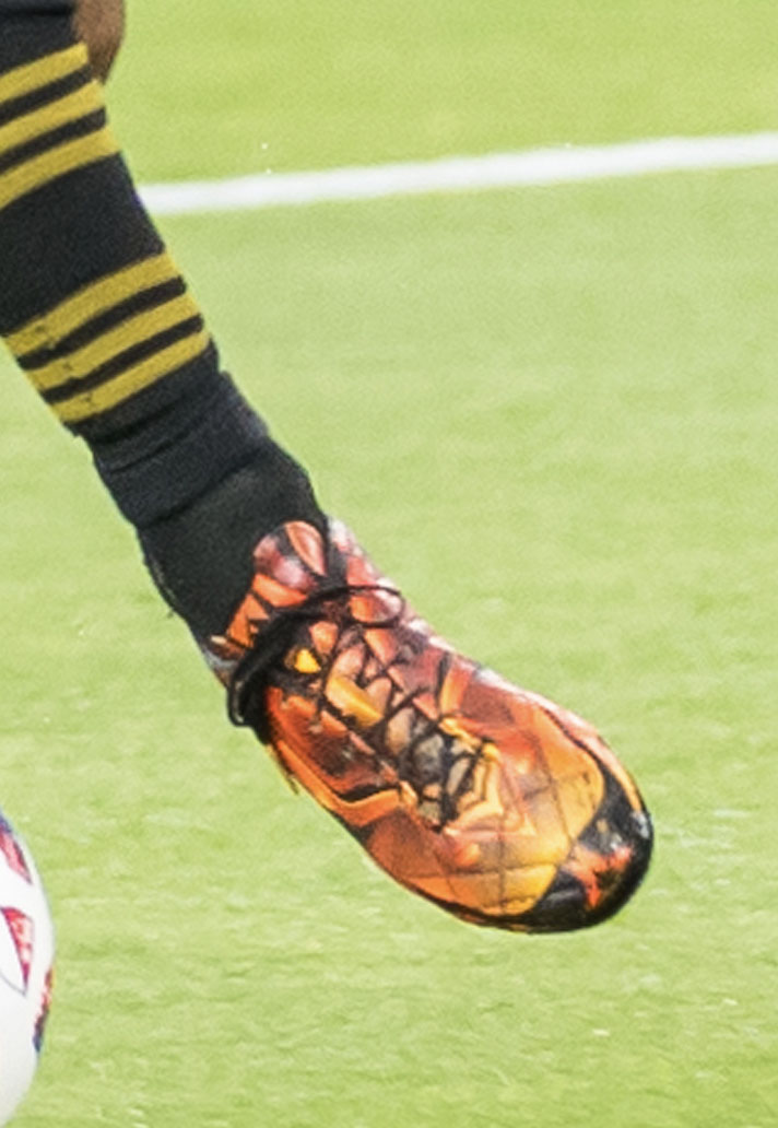 Another player in the adidas Predator 18+ this weekend was Gamba Osaka's Matheus. Rather than wearing the blue "Deadly Strike" colourway being sported by all leading Predator players, Matheus opted for the all black "Nite Crawler" edition.