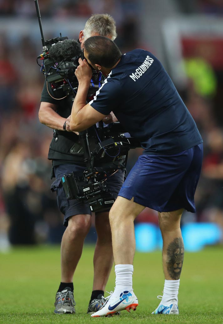The king was back at his old stomping ground on Sunday night as he lined-up against an England team made up of "celebrities" and ex-footballers. Cantona dusted off his iconic PUMA King boots to mark the occasion.