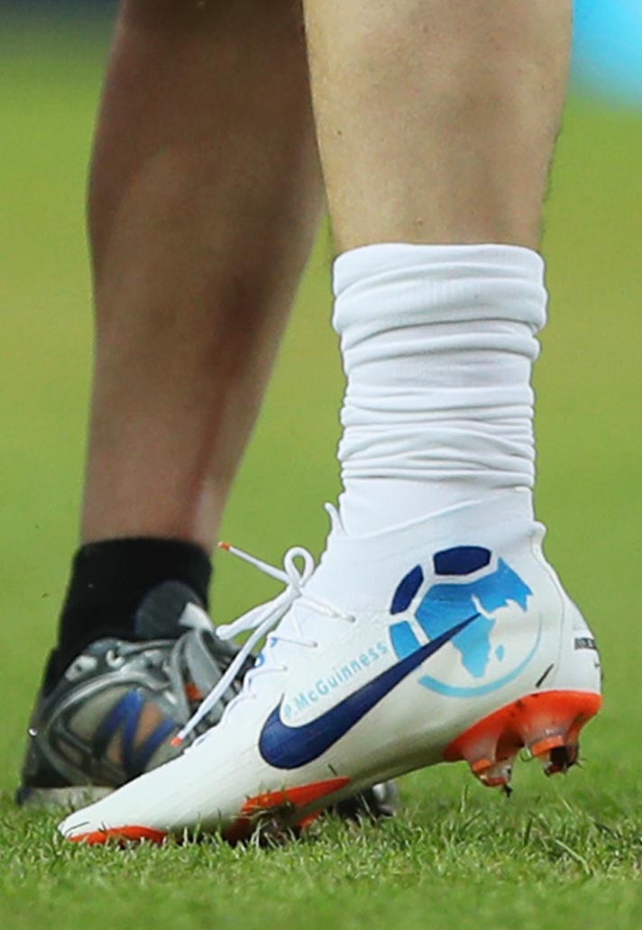 Paddy McGuinness back the most Irish sounding name to represent England this week as he played his part in the Soccer Aid game. The comedian took to the Old Trafford pitch in a pair of Nike Mercurial Superfly 360 boots with a customised UNICEF logo design.