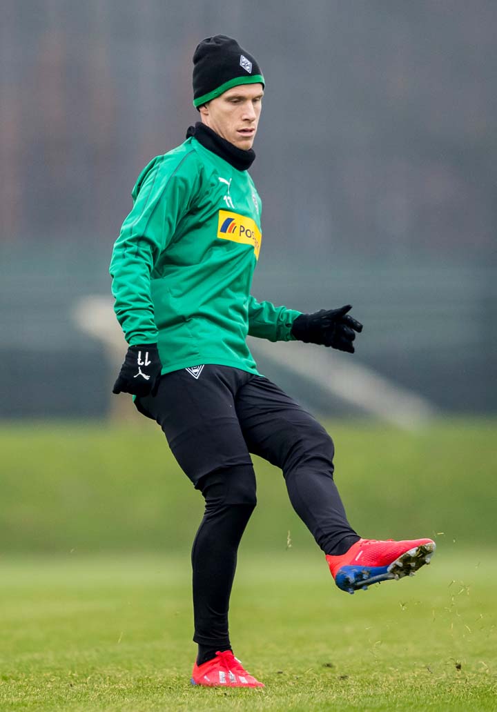 Completing the new looks for the adidas silos, Borussia Monchengladbach's left back Oscar Wendt turned up to training in the next X design. Red and blue for the speed silo to see out winter in.
