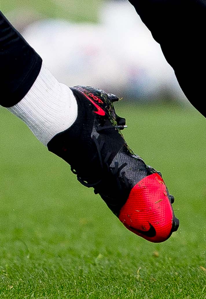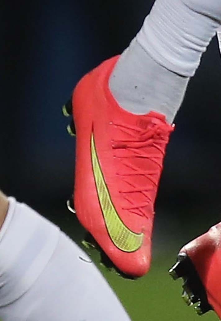 Another Greenspeed appearance came on the feet of Aston Villa striker Jonathan Kodjia, as he trained in the more conventional 'pair'. He opted for a smart red and black look for his Nike iD Mercurial GS. Kodjia missed out on Villa's triumph over Bristol City due to a rib injury, so didn't get to show them off on pitch.