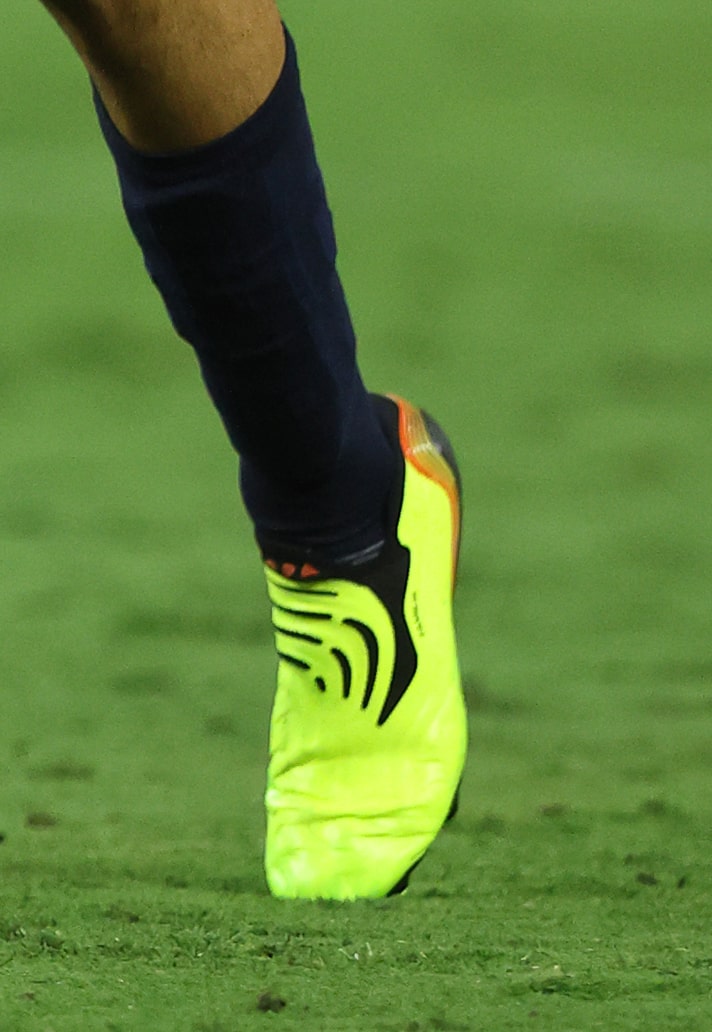 A typically fiery Clasico took place yesterday in Paradise, Nevada, and Pedri caught the eye in the brightly coloured adidas COPA Sense + from the "Game Data" pack.