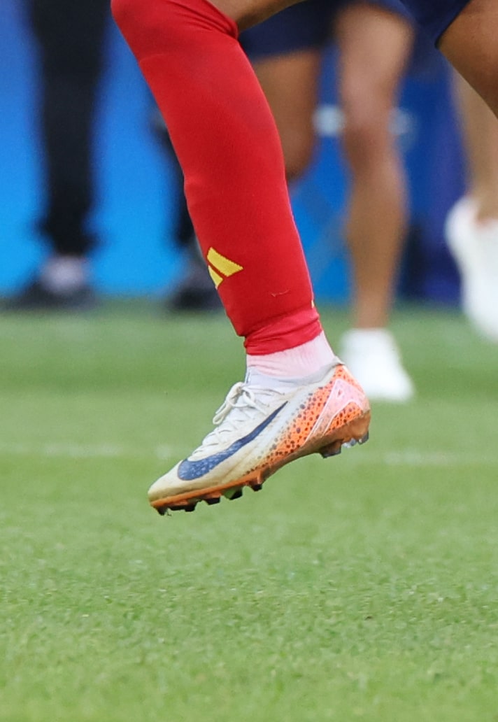 For the 2024 Olympics, Nike brought back the Ostrich print visage for its 'Electric Pack', which carried across all athletes' footwear. Spain's Salma Paralluelo successfully converted her spot kick in the quarter final penalty shootout against Colombia in them.