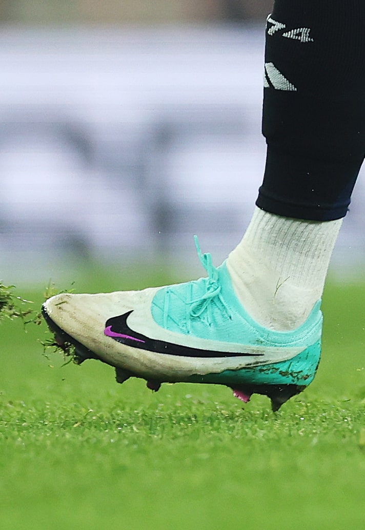 A player often seen wearing Phantom GXII's, Ollie Watkins has chosen to take it back a generation for the last couple games, opting for the first generation of Phantom in the "Hyper Turq/Black/Fuschia Dream/White" colourway. Still doesn't stop him scoring...