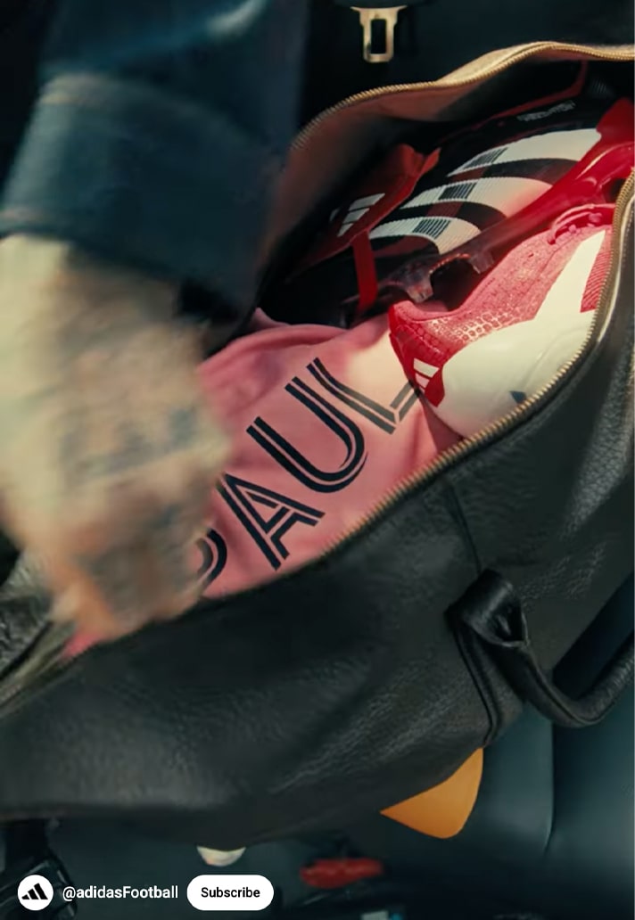So I’m going to be honest with you here: I know exactly what this boot is, to the point where I’ve held it in my hands. And let me say that it absolutely will not disappoint when it drops. As you can see from the glimpse in Beckham’s bag, the boot sitting alongside the “Paul” Inter Miami shirt and the ‘Pure Victory’ Predator (and further teased by the driver’s Predator air freshener) is indeed presented in that iconic “Black/White/Red” look, but believe me, that’s only scratching the surface of this design. Obviously I can’t say anymore than that, lest the suits get sent round to silence me, but one thing I will say is that the Predator has been at the heart of many memorable moments in football history over the years, and this boot could well be involved in plenty more in the future.