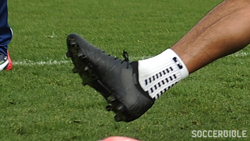 As adidas begin to up the player-feedback tempo on their latest innovation, new signing Theo Walcott becomes the latest pro to slip on the prototype boot, fully wrapped in black to protect its identity.