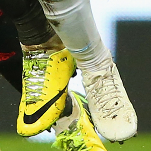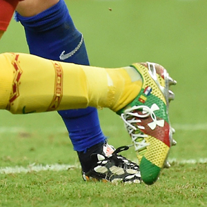 Cameroon's Benoit Assou-Ekotto laced up in a custom Under Armour Clutchfit boot drenched in his nations's colours against Croatia last night.