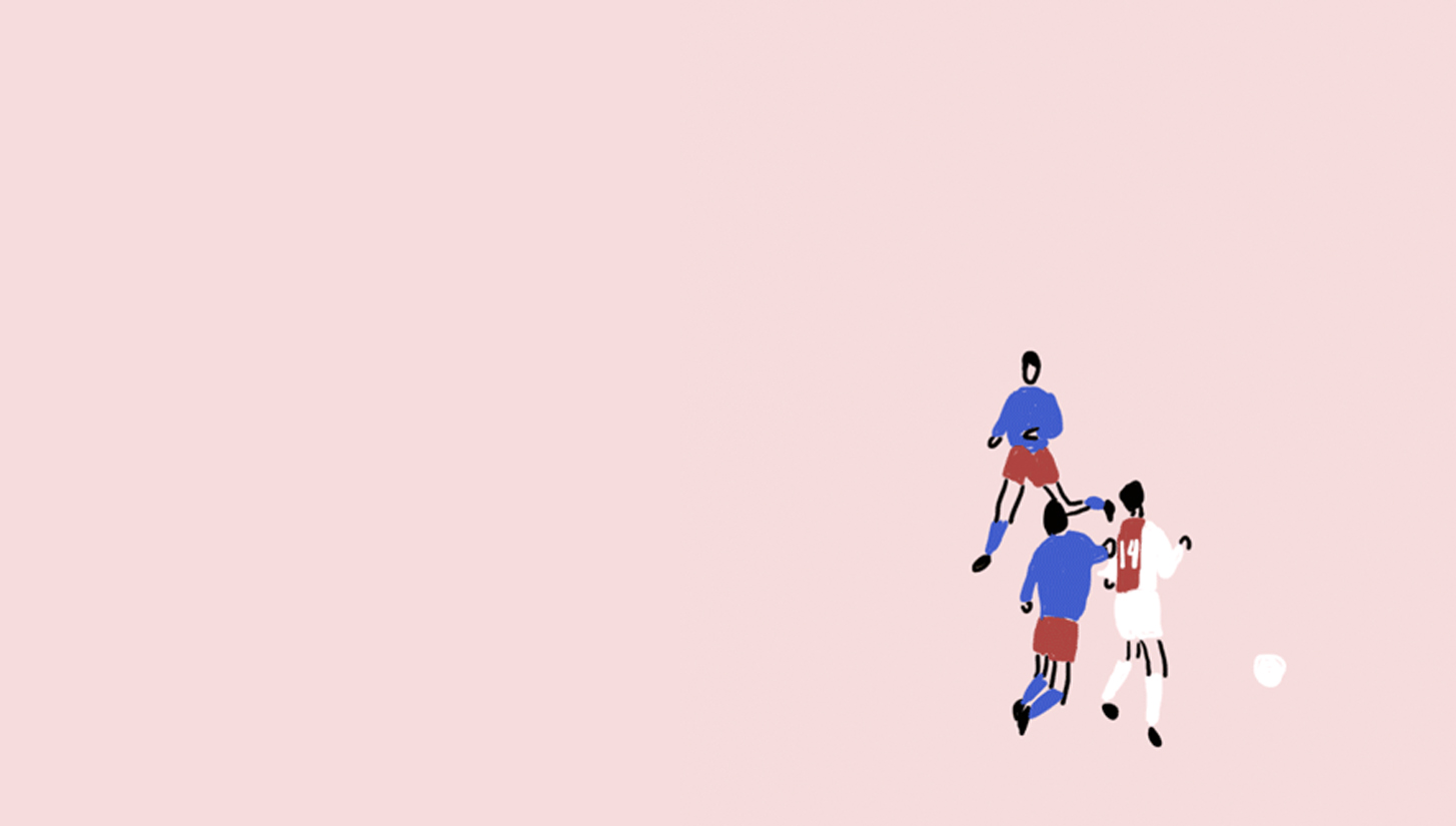 One offering an animated touch is that of Mexican illustrator Manuel Rios who has captured an iconic goal, a chip no less that Cruyff scored whilst donning that famous '14' in the triumphant red of Ajax. The animation captures him weaving past defenders only to lob the keeper with nonchalant class. Take a look at the illustrated animation below.