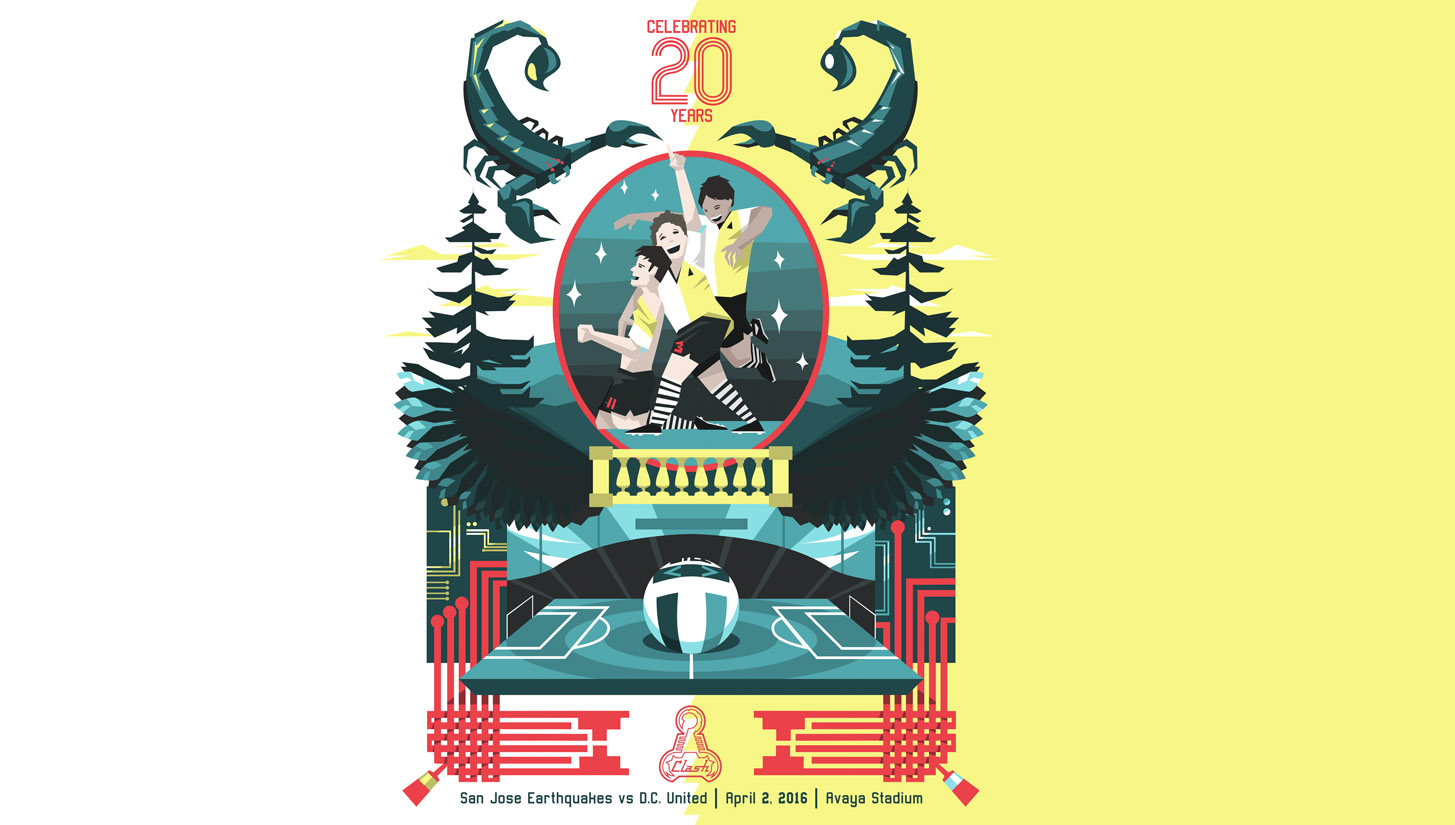 “I have the stadium, the official MLS ball, the computer chips to represent Silicon Valley. I did the eagle wings because they played D.C. United, so it was a nod to the match. The Clash name came from the idea of the natural beauty of the area contrasting from the Silicon Valley technology and how they’re polar opposites. I had to add the scorpions, obviously.”