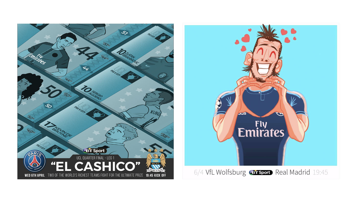 The artist with the most votes across the two-legs will make it through to the next round of fixtures as they vie for a chance to design artwork for the UEFA Champions League final. The artwork can be voted for via @btsportfootball on twitter and @btsport on Instagram.