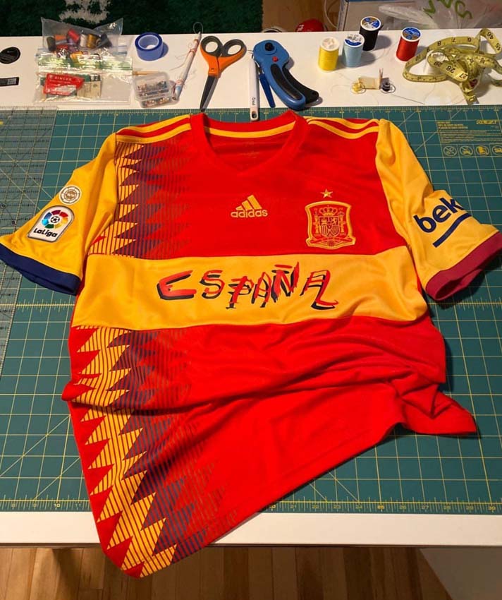 Building on the mantra “Creativity has no boundaries”, Calcetto Eleganza have taken the lockdown as an opportunity to dig even more into the blur of football and fashion, finding new inspiration in it through technology and sustainability. As part of this they recently announced that they would be hosting a very exclusive online “Recycling a football jersey”workshop. The concept was easy enough, simply requiring participants to get an old football shirt out of the closet, grab old pieces of cloth, paper, plastic and the like, ensure the required equipment is at hand (scissors, glue, tape, needle, thread), and then be ready to (re)create.