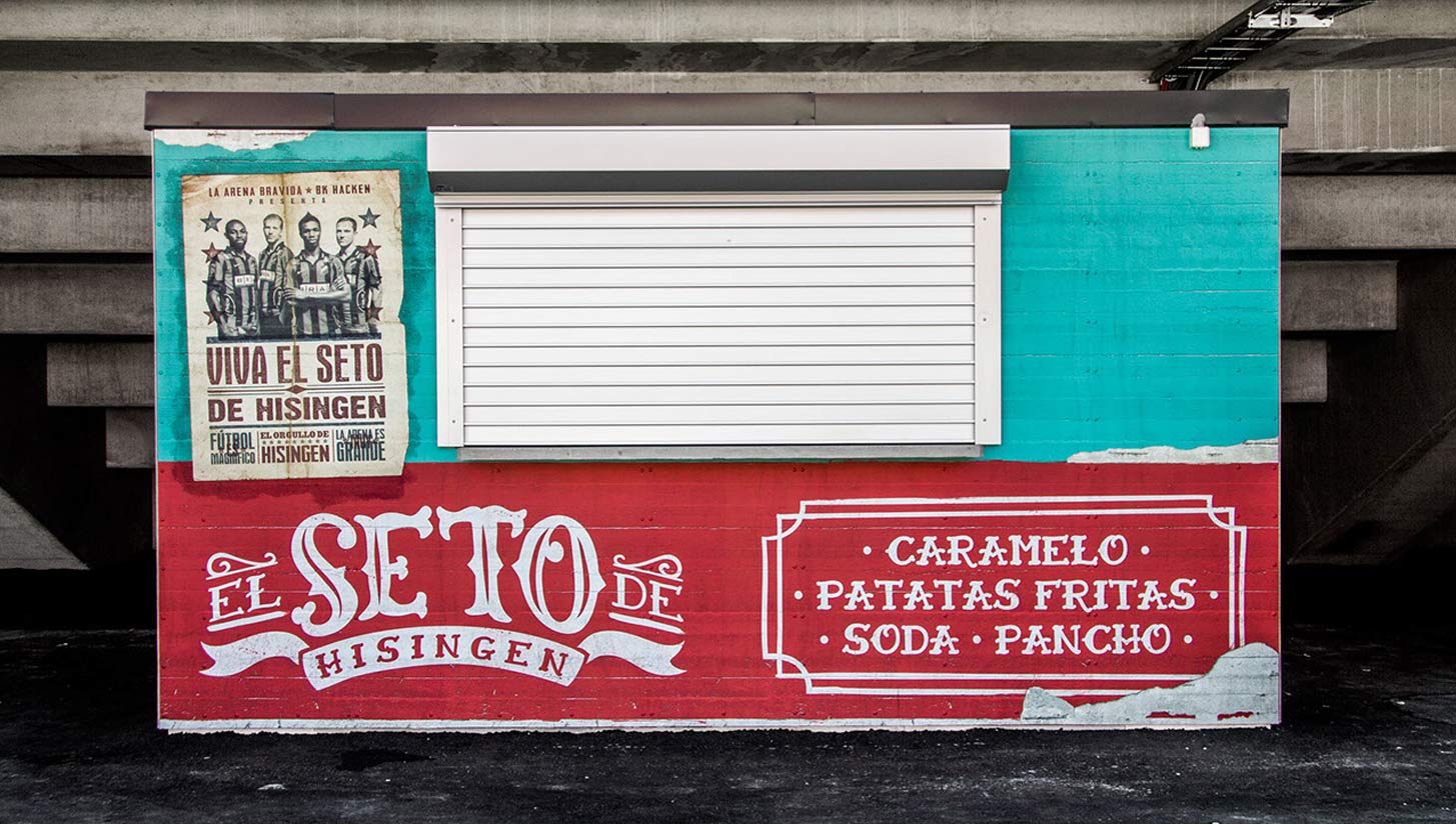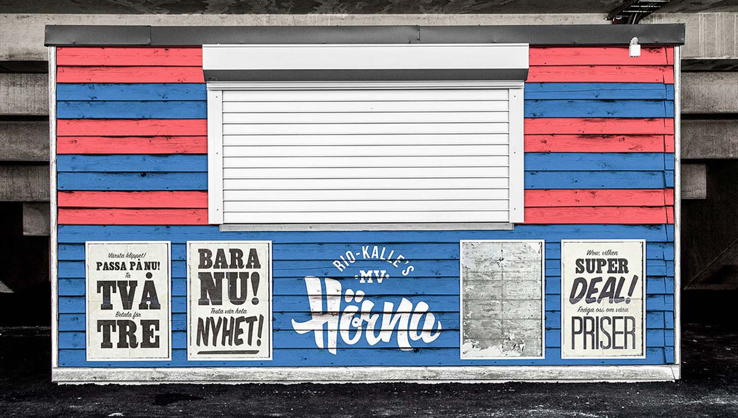 Nils Gustafsson created these concepts that are washed with beautiful typography and paint buckets of inspired style. Nils describes the objective behind the project; "BK Häcken wanted something special for their newly built arena, that captured the diversity of their team and the island in Gothenburg where they reside at. The kiosks around the arena each got a themed front inspired by different parts of the world and the away supporters kiosk even got a design where the name and colours changed depending on the visiting team."