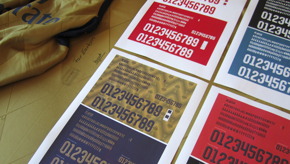 In the first season with Arsenal we introduced something completely new to Arsenal. A third shirt with a very striking diagonal graphic. This diagonal language was not only on the front graphic of the jersey, but also within the small heat transfer on the back on all three, home, alternate and third jersey. When looking into the typography, we wanted to continue with this diagonal language by breaking up the numbers.