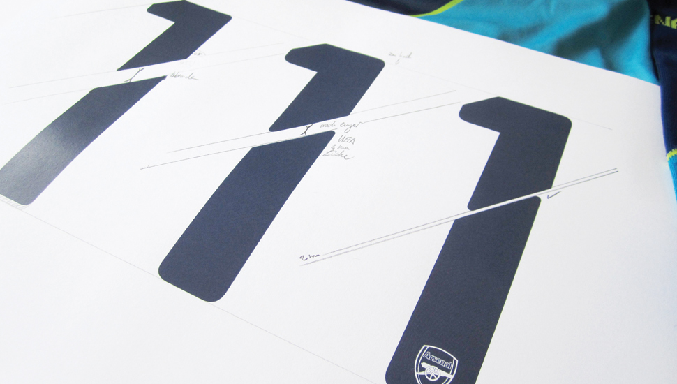 Most important are the UEFA/FIFA regulations. Limiting, but very necessary. There are quite a few points to consider. The height of the typeface, the distance, the colour - to name a few. The stem has to be between 2-5 cm for example. You are not allowed to print any graphic within the numbers. There is a very tight grid within you can play. It is then up to us to find creative scope to develop an interesting typeface, that stands out, but fits to all regulations.