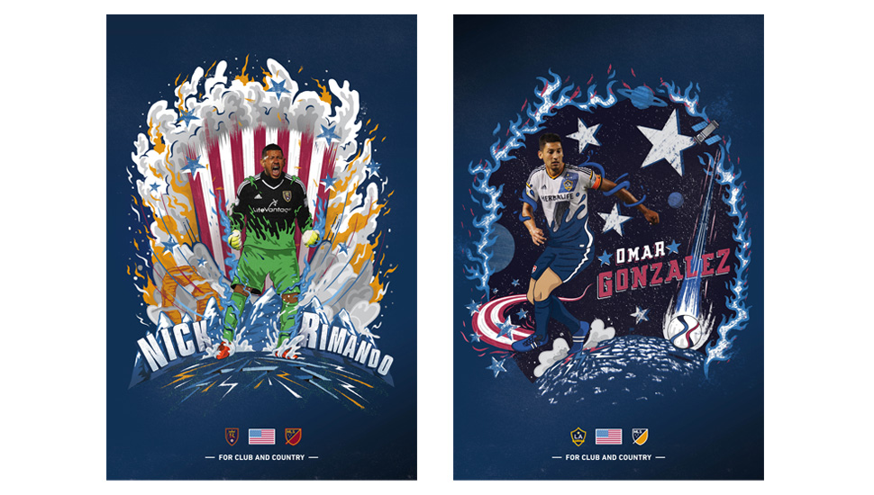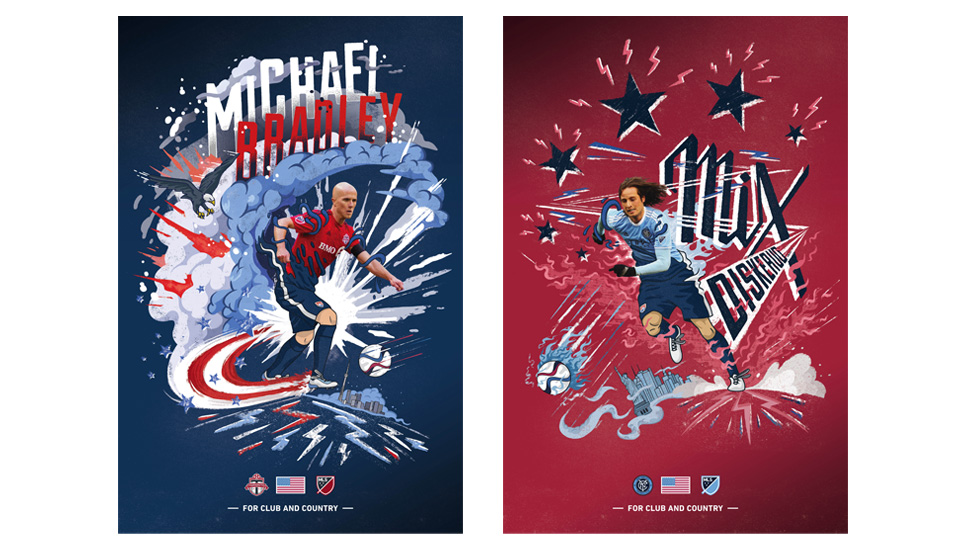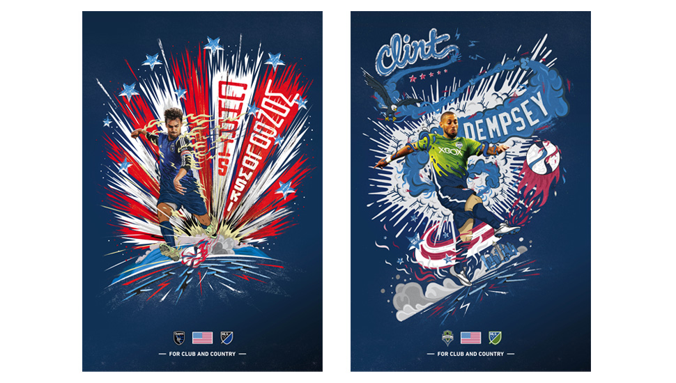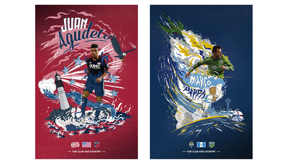 Celebrating the positive connection between players of the MLS and some of the countries they are representing in the Gold Cup, Crush Creative were enlisted to help develop a series of posters. Develop they did, in some style.