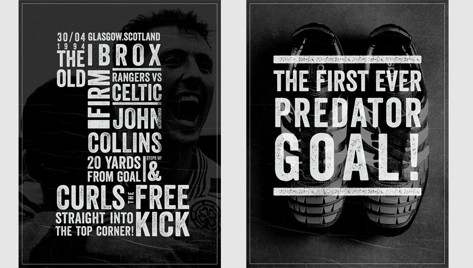 As the adidas Predator continues to celebrate two decades of supreme existence, the creative folks at Pro-Direct Soccer have launched an awesomely artistic series of adidas Predator posters, showcasing each Predator model, the famous players behind its history and some of the boots most memorable moments including its first ever goal scored by John Collins for Celtic in August, 1994. Bet you didn't know that one. Unfortunately they won't be available to buy, but should make for some seriously cool office decals. Our email request has already been sent.