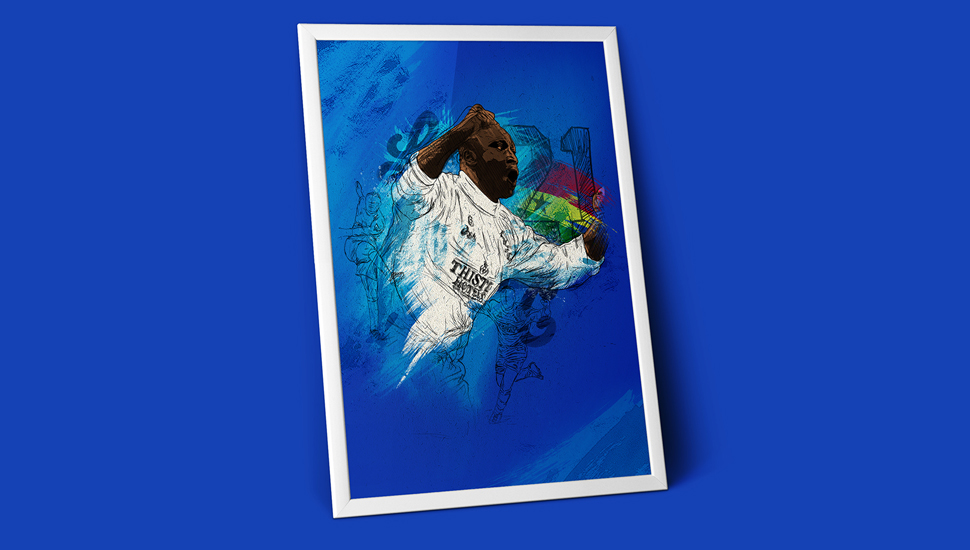 A fitting piece of work that reminds you that somewhere in Leeds there is probably a cross bar still rattling thanks to one of Yeboah's finishes. What a player. You can find out more about The Square Ball here, check out more work from Rhys here too.