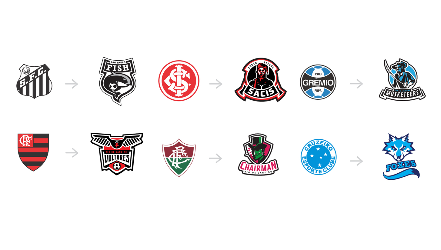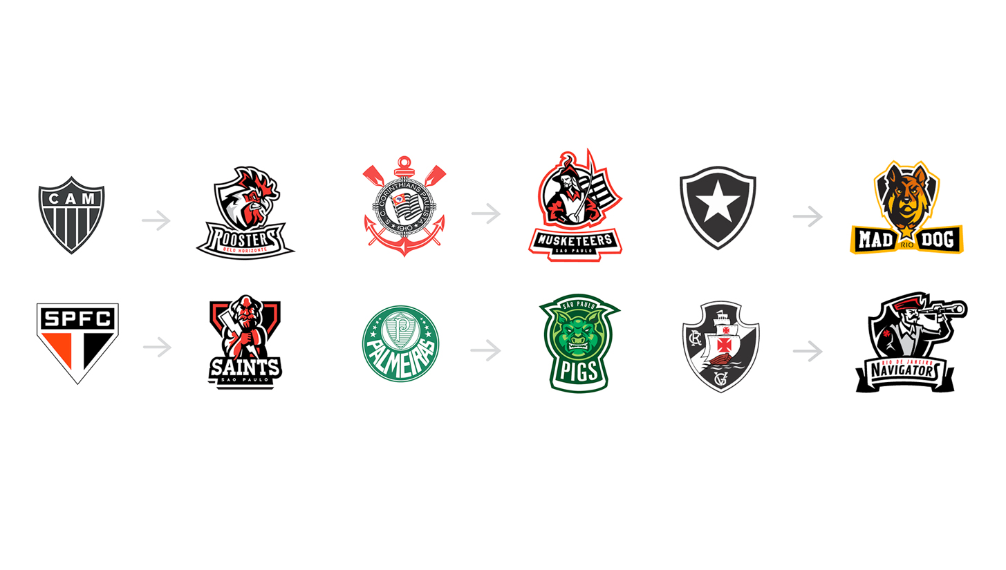 This piece of conceptual work by illustrator Samir Taiar poses the question, "What if Brazilian teams were in America?' and re-brands some of the biggest names from the South American game.