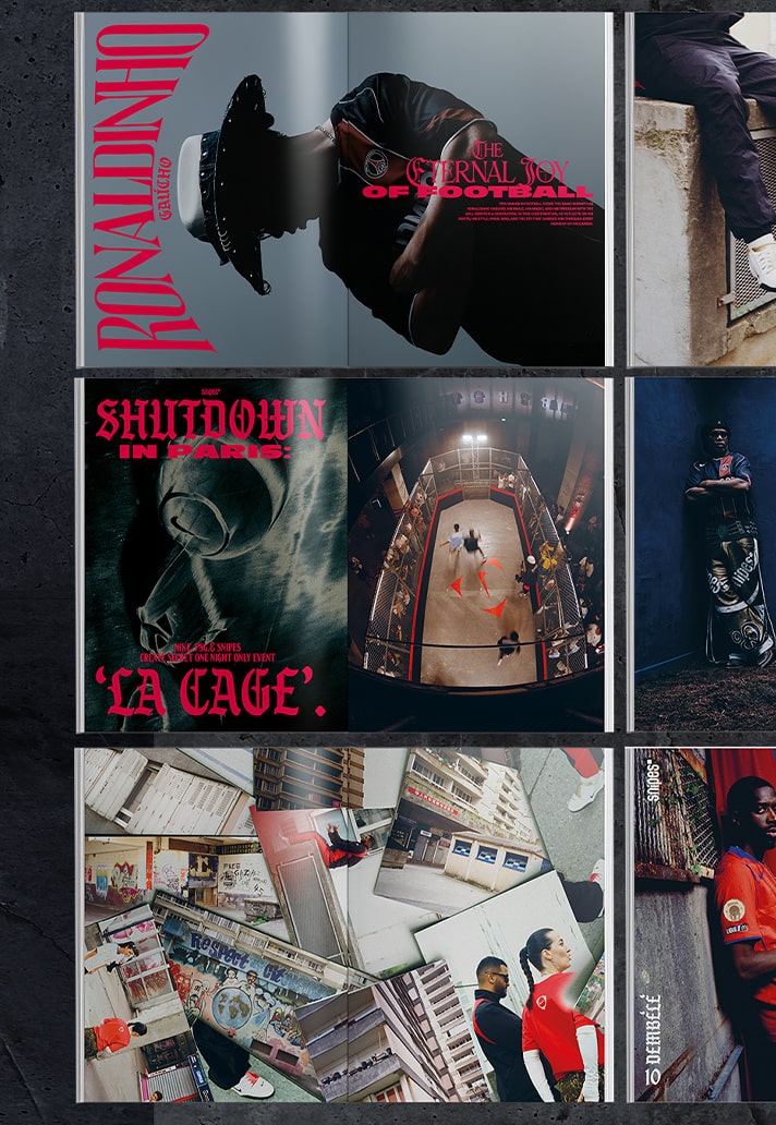 Fronted by the eternal symbol of joy and artistry — Ronaldinho — District 98 is more than a book. It’s a visual manifesto. A mythical reimagining of Paris as a utopia where football is freedom and creativity knows no bounds. Produced by SoccerBible in collaboration with SNIPES, the project celebrates the spirit of the streets — the places where flair is currency and expression is everything.