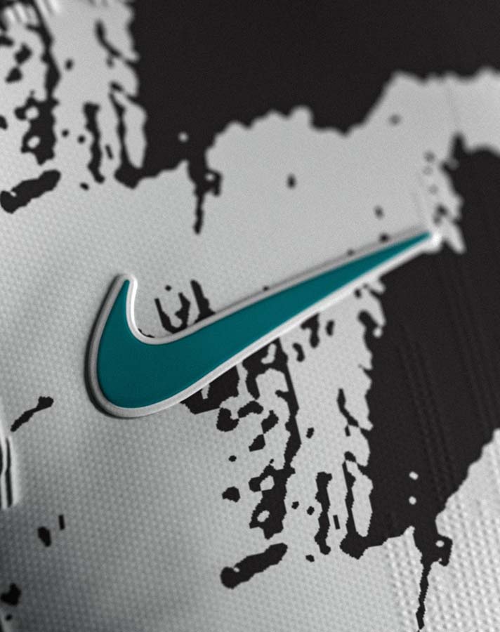 The shirt, like the current home option, comes with teal accents on the collar, cuffs, Nike branding and partly through the club crest, which, as mentioned, is split by the black covering on its lower half. The ‘Standard Chartered’ sponsoring also takes on an aesthetically pleasing two tone effect, mirroring the monochrome look of the actual shirt. One can only dream of something like this hitting the shelves…