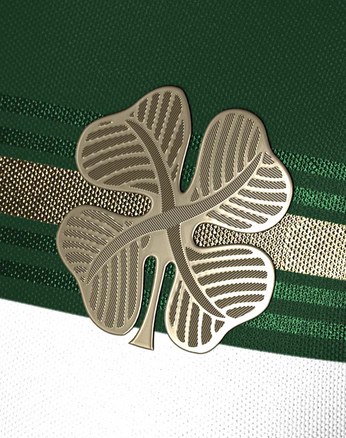 Celtic kicked off their new deal with adidas at the beginning of the 20/21 season, and this new concept incorporates the branding seamlessly, placing the the white Three Stripes on the sides of the shirt. That ties in nicely with the banding that runs across the chest, maintaining the classic element of the hoops that are so synonymous with Celtic kits. The final flourish comes courtesy of gold accents that run across the chest, along with the simplified club logo.
