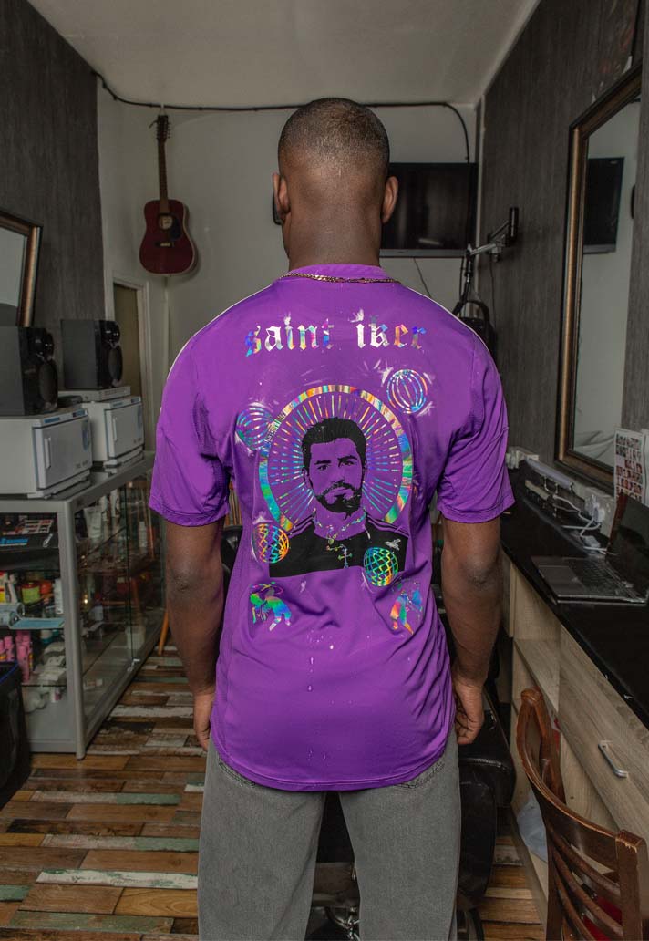 When talking about the greatest goalkeepers the world has ever seen, Iker Casillas has to be in the conversation. Put simply Casillas was one of the safest pairs of hands in world football. His acrobatic ability to twist, turn and consistently make fingertip saves, makes him a legend. So miraculous and divine is his goalkeeping ability that the fans nicknamed him ‘Saint Iker’. This is the most experimental shirt of the collection featuring hand painted as well as printed elements, combining black matte colours with iridescent prints and a few heavenly cherubs to boot.