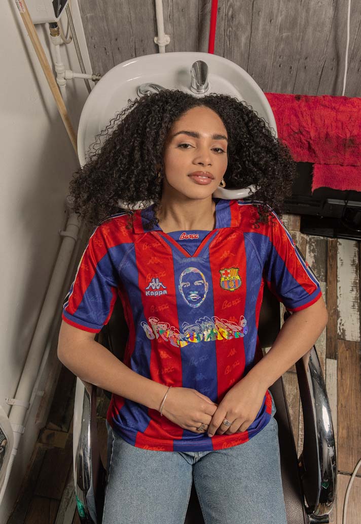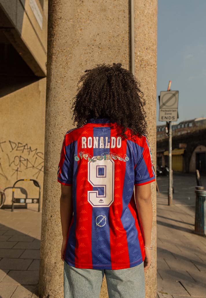 Next up is O Fenômeno. A legendary title for a legendary player. Ronaldo only had one season at Barca but to many, he was in his prime. Consistently celebrating his record breaking goals with his armed outstretched to replicate the statue of Christ the Redeemer that watches over his native Rio de Janeiro. The jersey features an iridescent print, with the colours changing in different light settings.