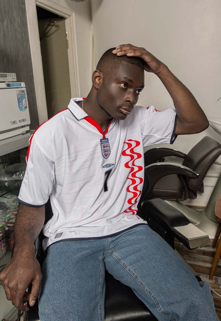 First up is David Beckham. 2021 marks the 20th anniversary of his legendary free kick against Greece. Around the world, school kids, aspiring academy players and the world’s elite footballers were all trying to emulate the ‘Bend It Like Beckham’ technique. With this jersey, Offside Outlet have created a twist on the jersey that Becks wore that day by switching it out for the 2004 England home shirt. Instead they’ve added a red bending curving shape instead of the traditional vertical line and printed an illustration on the back of Beckham taking a corner.
