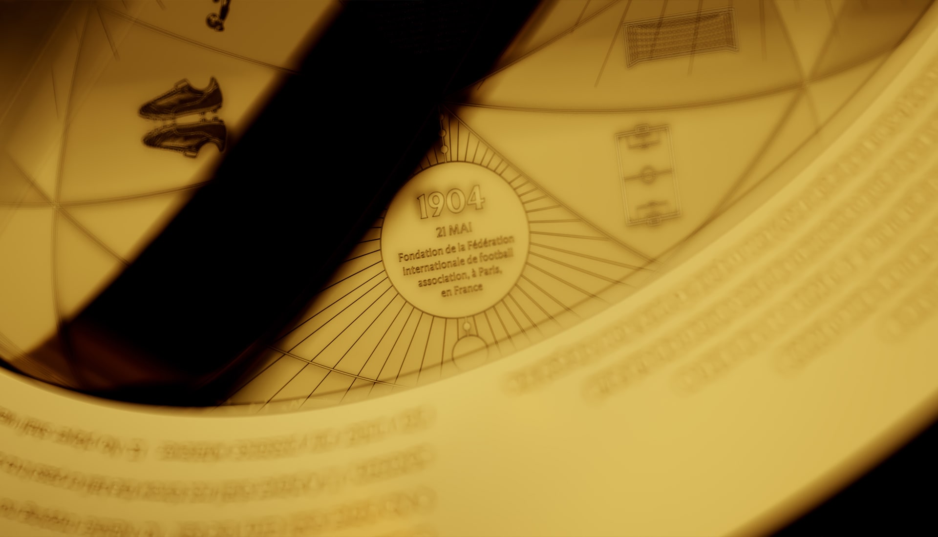 Football’s past and present are further illustrated by symbols that show the positions of the celestial bodies in our solar system on the date of FIFA’s founding in Paris, France on 21 May 1904 and that of the opening game of the FIFA Club World Cup 2025 in Miami, USA on 15 June 2025.