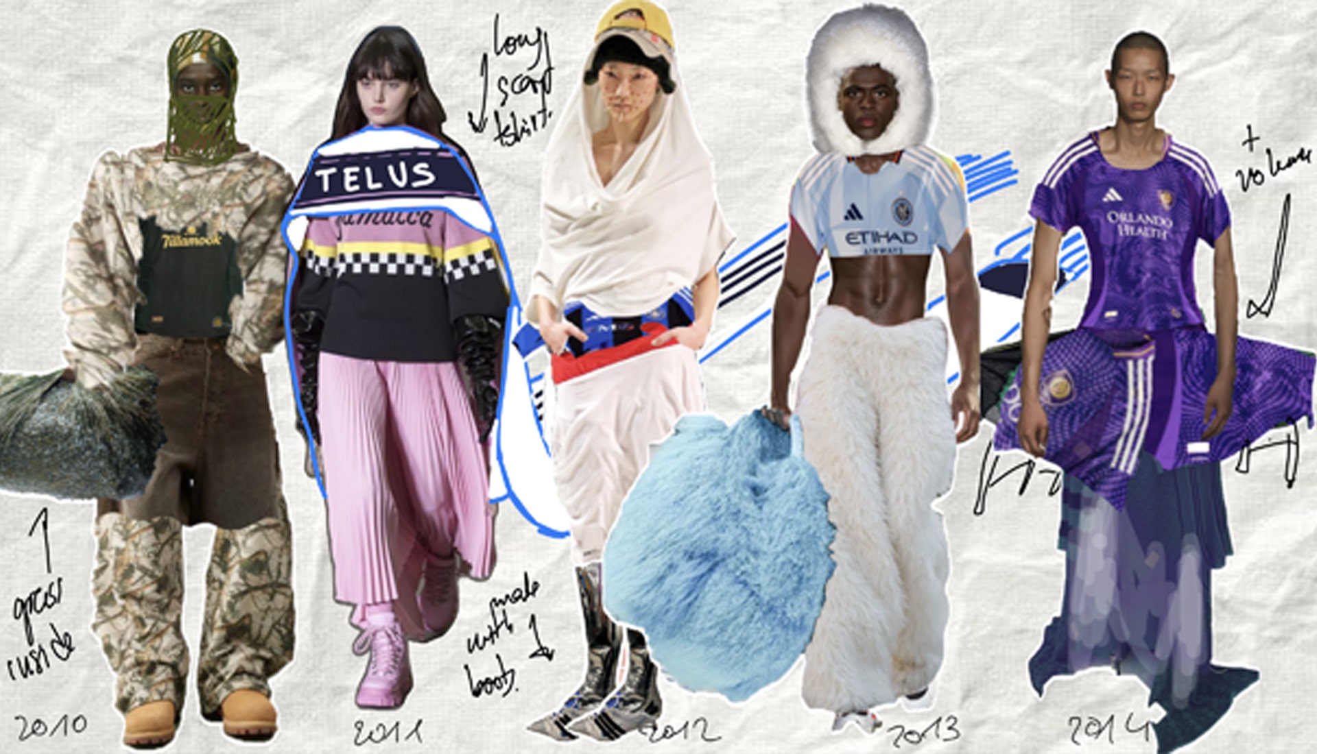 This outfit is a nod to Vetements’ football-inspired collaboration, merging streetwear with sports culture.
