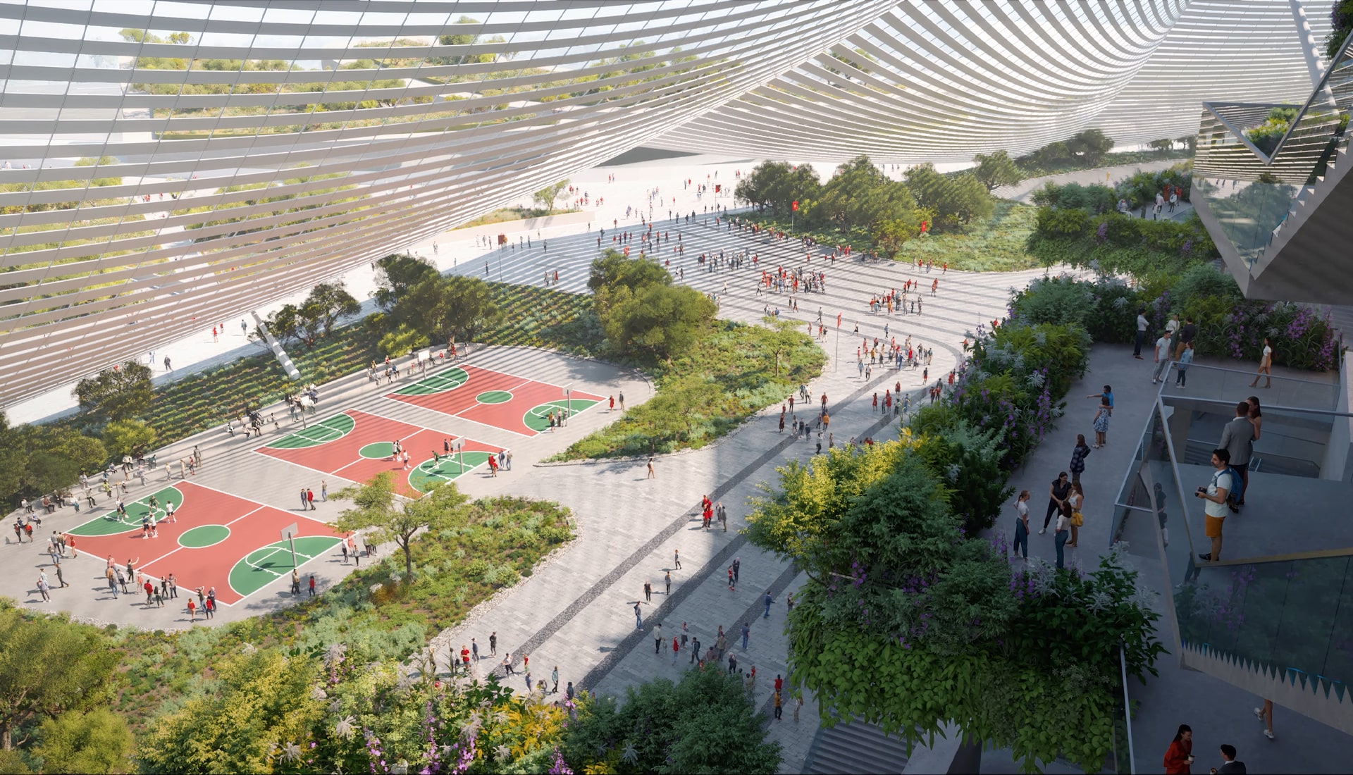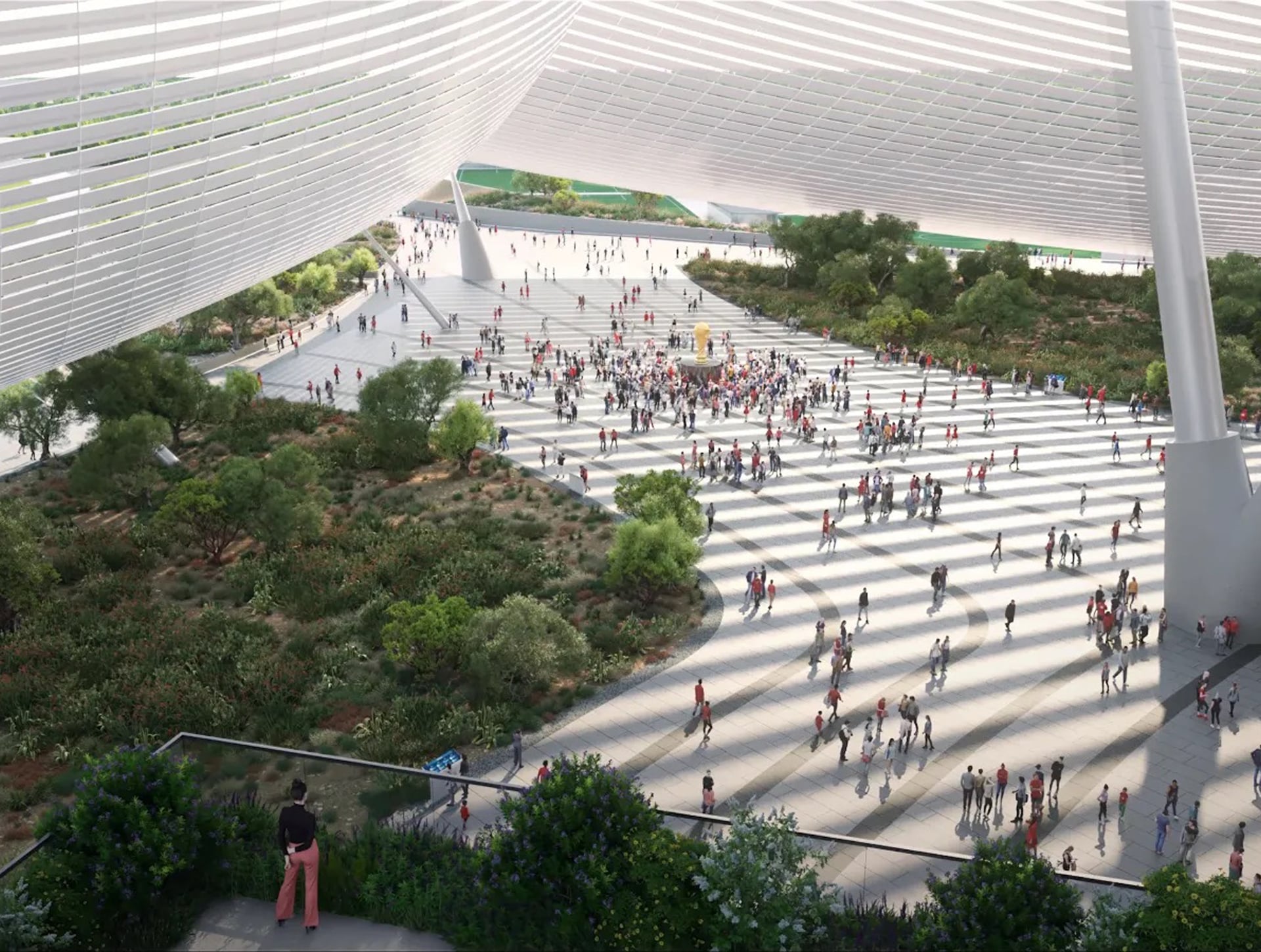 The canopy doesn’t just shelter; it invites. Thirty-two grand stairways pierce the stadium's skin, doubling as monumental gateways and botanical walkways. Elevated 28 metres above ground, these green terraces offer fans an unexpectedly serene arrival experience — part stadium, part garden, all spectacle.