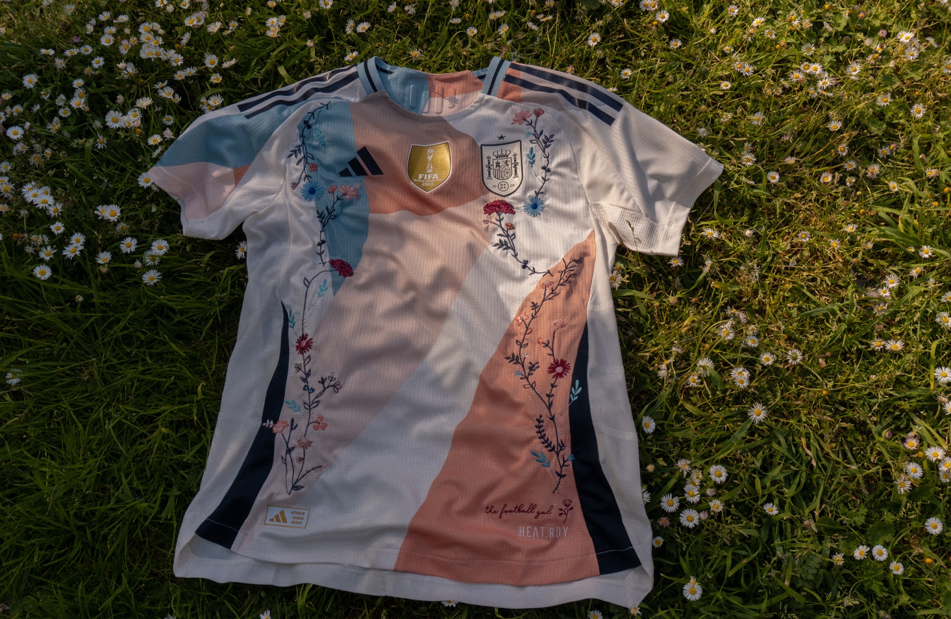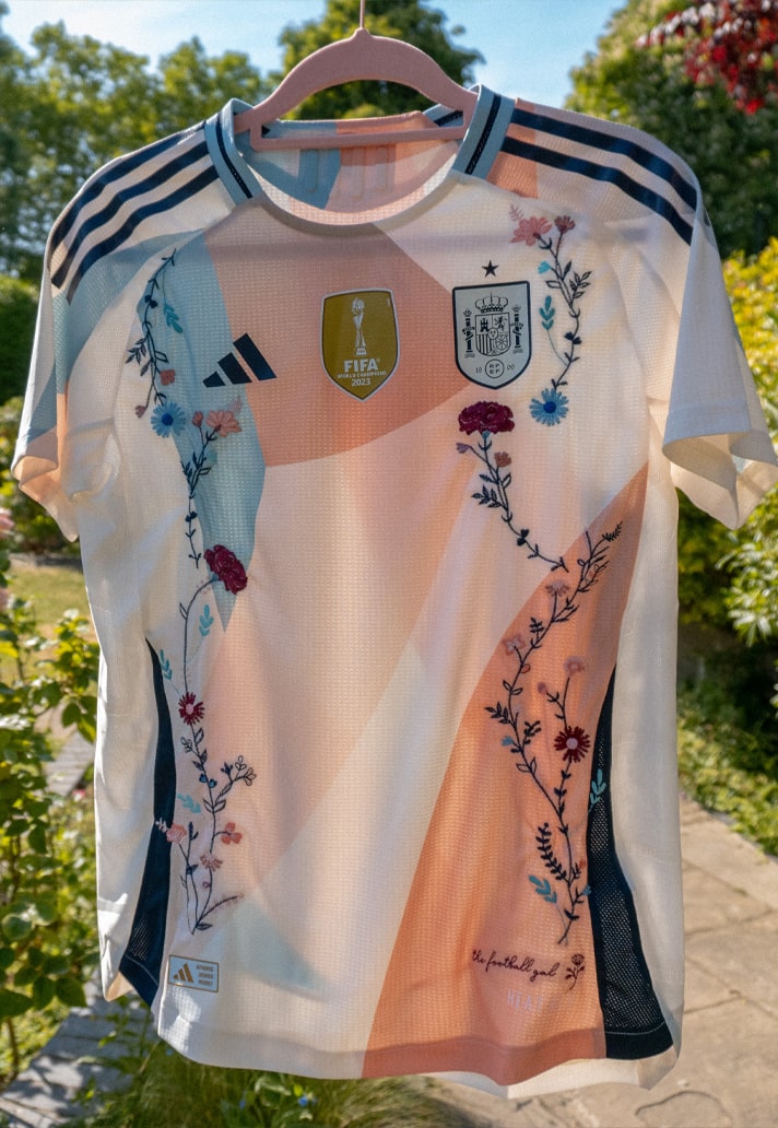 The florals don’t just sit still, either. They move. Winding around the badge and flowing down the sides of the shirt like creeping vines mid-bloom, there’s a sense of growth and motion that mirrors the rise of the women’s game in Spain. It’s an aesthetic play, but it’s emotional too—a mix of artistry and identity that speaks louder than words.