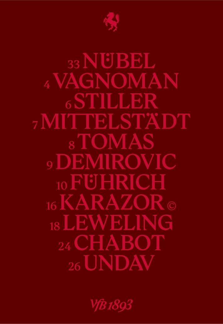 And then there’s the Rössle — Stuttgart’s heraldic horse — reimagined as a symbol of dynamism and identity. First documented in the 14th century, the horse has long galloped through the hearts of VfB fans. Now, it takes centre stage in a brand system built to move.