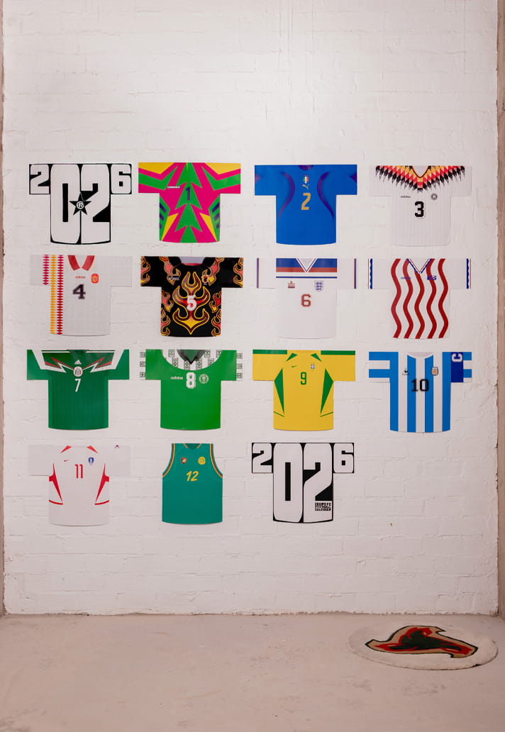 Each month takes inspiration from an iconic World Cup jersey, reimagined through the physical shape and size of the calendar itself. Yes, really. Sleeveless Cameroon? Check. Jorge Campos’ outrageous ’94 Mexico keeper jersey? Absolutely. Japan ’98 goalkeeper vibes? Straight flames. From Argentina and Brazil through to Germany and Italy, it’s a roll call of tournament royalty.