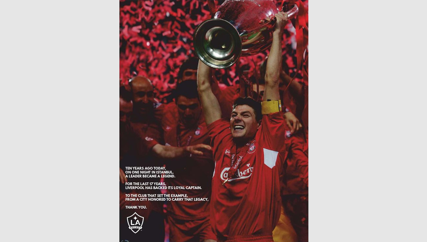 Passing the baton in very tasteful fashion, the LA club thanked Liverpool and its fans for the opportunity to carry on the legacy that the player leaves. The advert placed in the newspaper reads, "Ten years ago today, on a night in Istanbul, a leader became a legend. For the last 17 years Liverpool has backed its loyal captain. To the club that set the example, from a city honoured to carry the legacy, thank you."