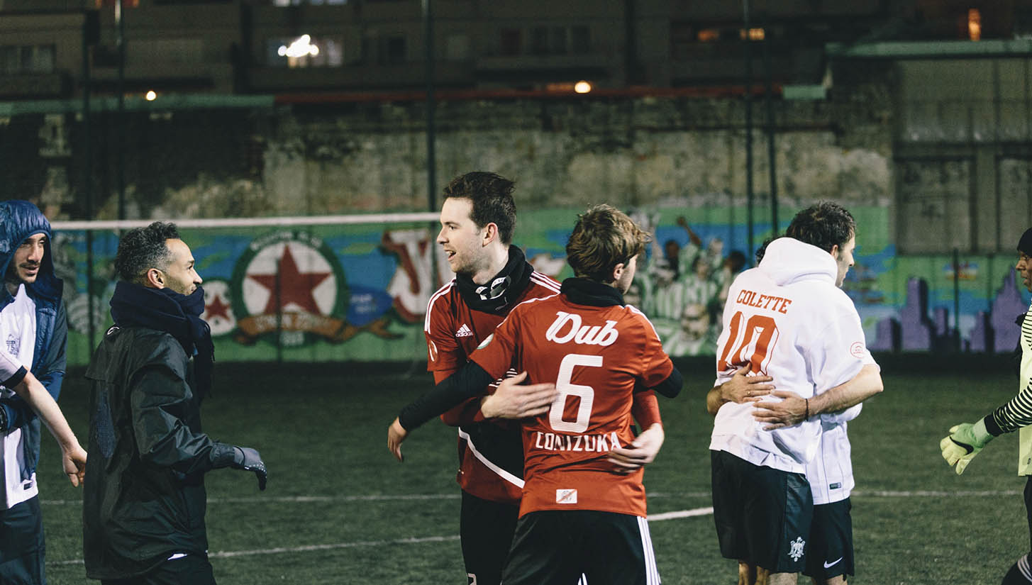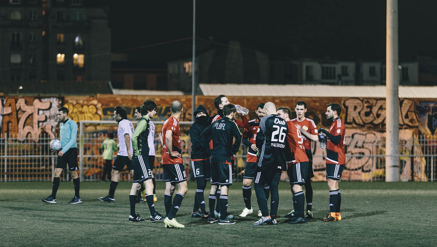 Le Ballon Football League got their third season underway on a cold, windy, Tuesday night in Stoke….Saint-Ouen. The historic Stade-Bauer, home of Red Star FC, plays host to the Parisian league of artists, designers and wannabe-footballers. Under a partially floodlight sky (one of the lights is bust), the Season began in earnest with a few surprises in store.