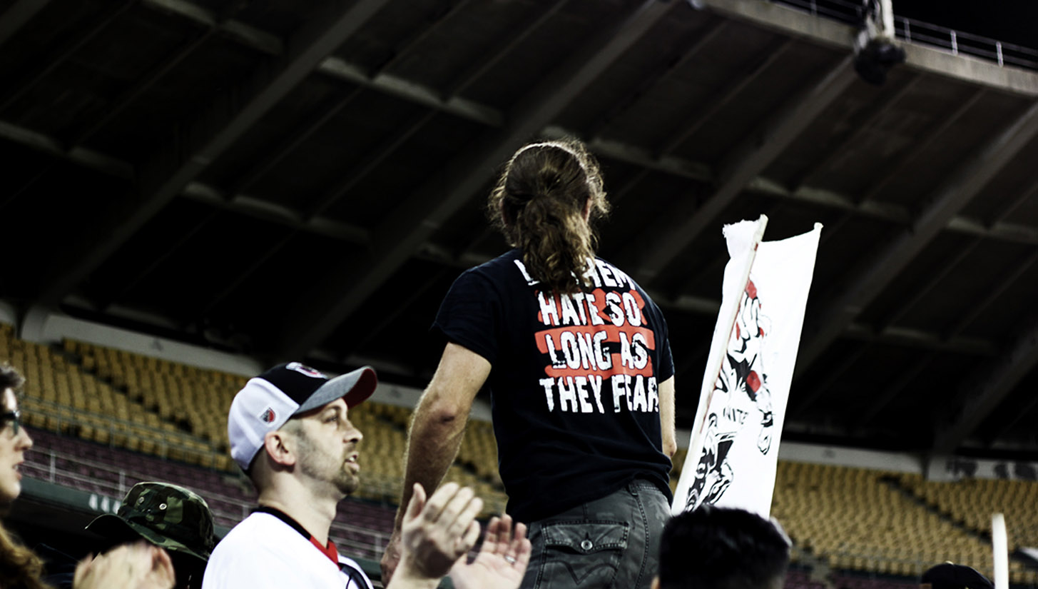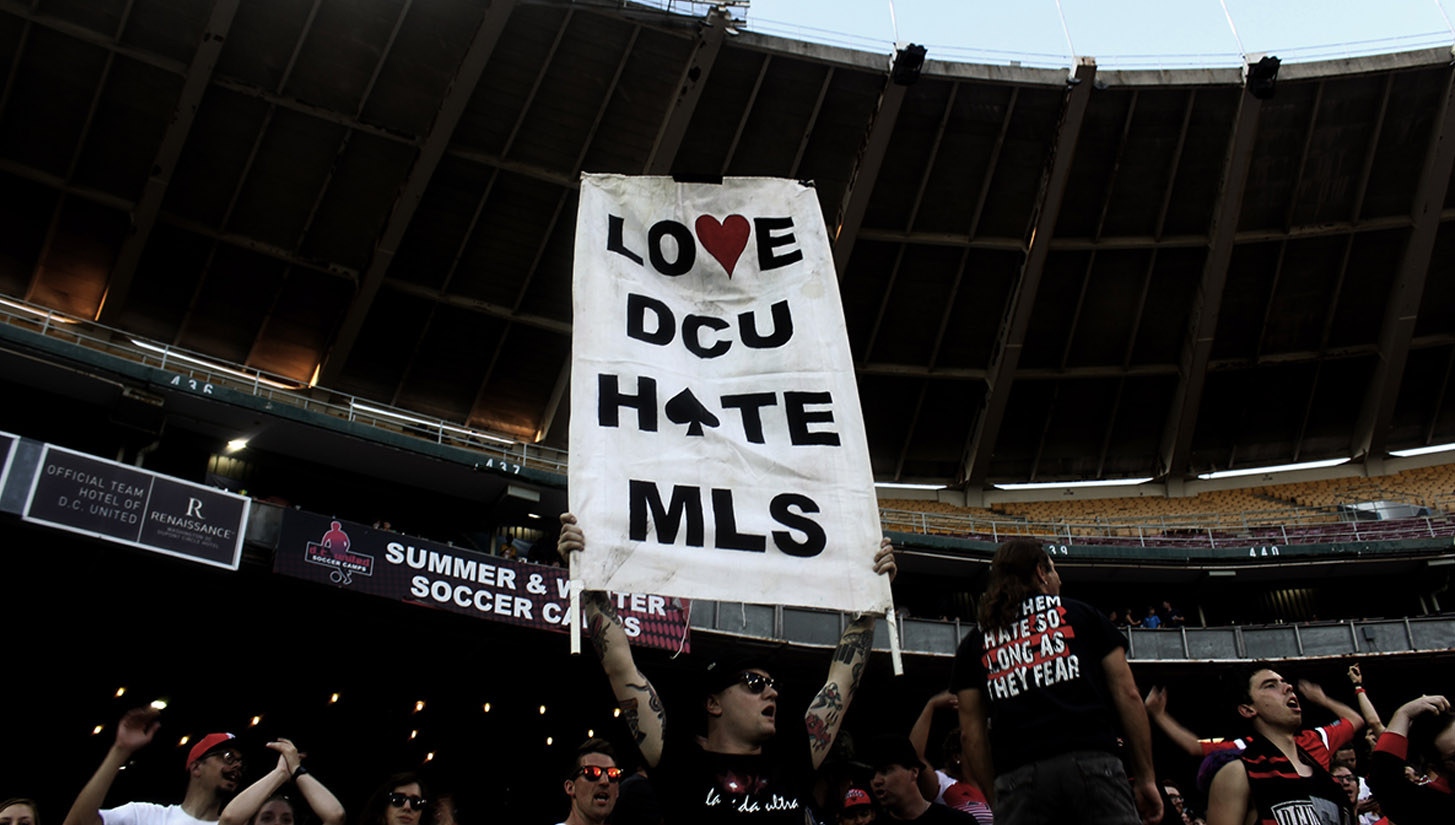 All eyes on the pitch and upstanding to be counted, the District Ultras were formed in 2010 with the sole aim of lending their support to both the players and their club. Naturally providing a background of flair, it's another showing of off-pitch energy that is fuelled by the fans in the MLS... even if it would appear one banner holder isn't too fond of the Major League Soccer set up.